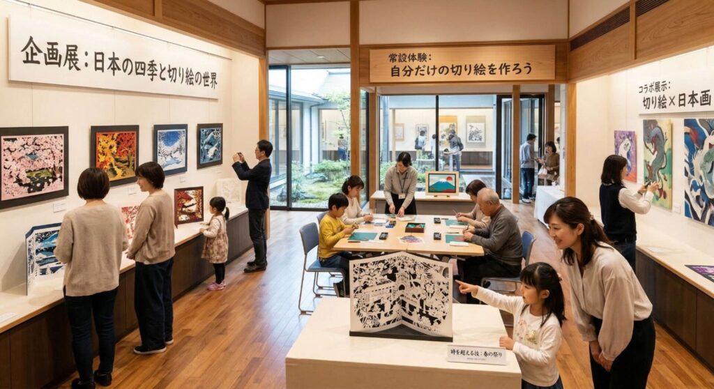 - 「切り絵 美術館」という視点で訪れると、鑑賞・体験・出会いの三つの楽しさが広がる