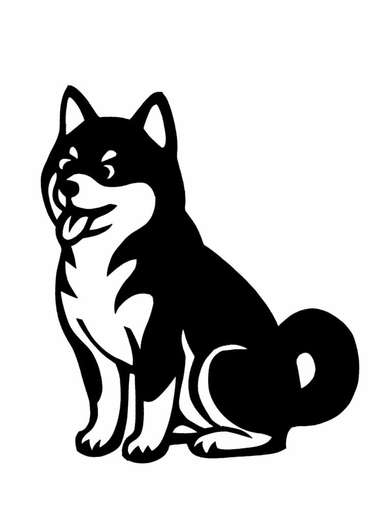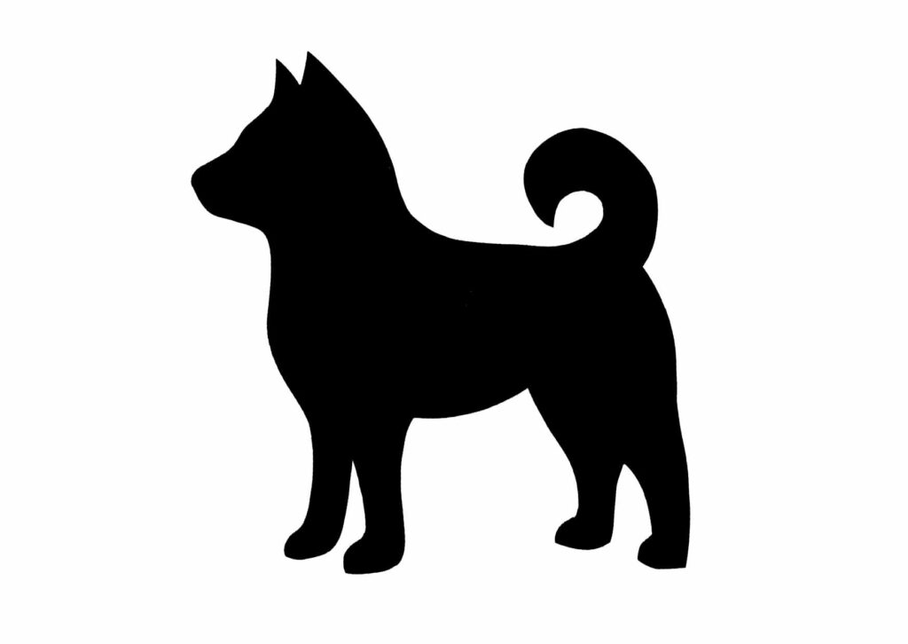 ピンと立った耳と、くるんと丸まったしっぽが特徴的な柴犬のシルエットです。
