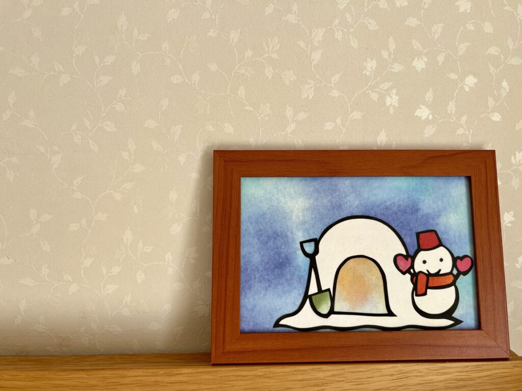 かまくらの中から漏れる明かりを、黄色い和紙を裏から貼って表現するのも素敵です。
