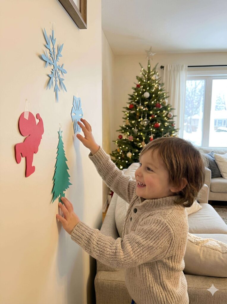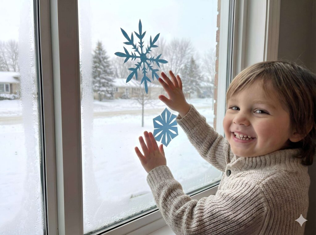 雪の結晶などは、窓ガラスに直接貼るのがおすすめです。