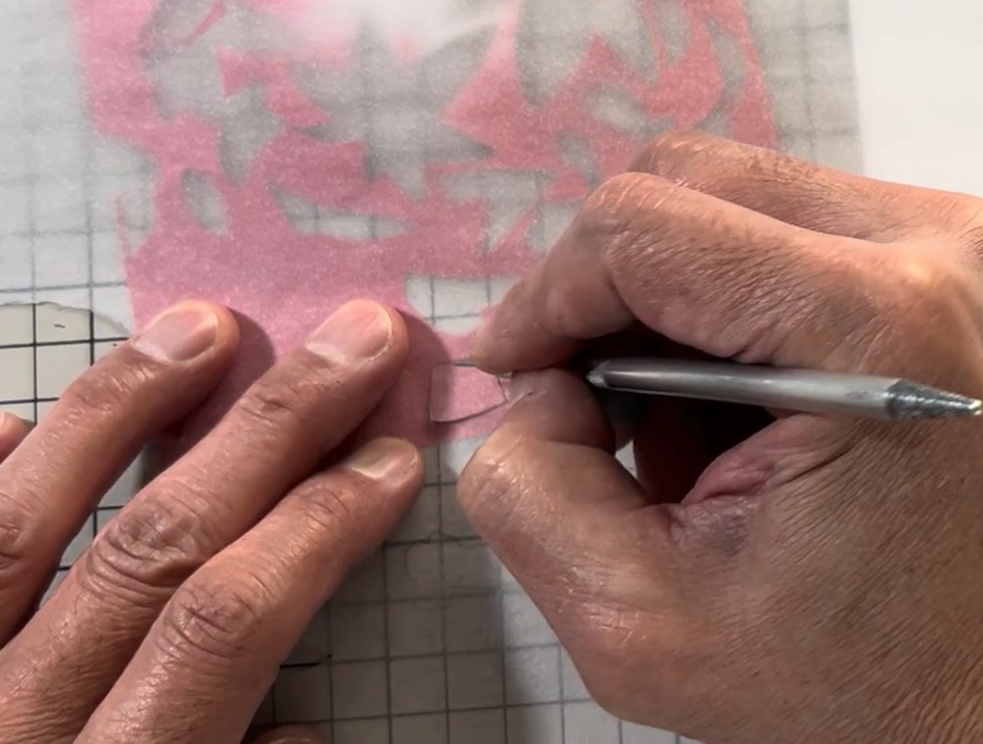 図案の「白い部分(切り抜く部分)」をデザインナイフで切り抜いていきます。
