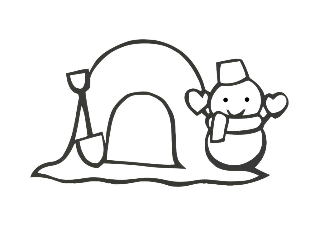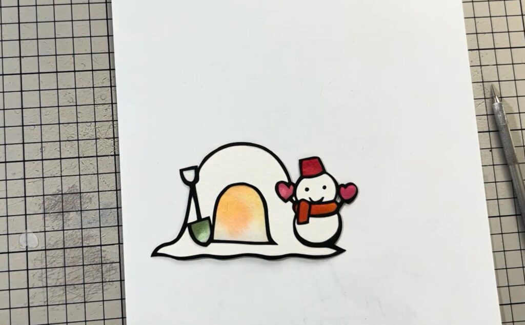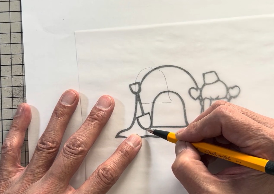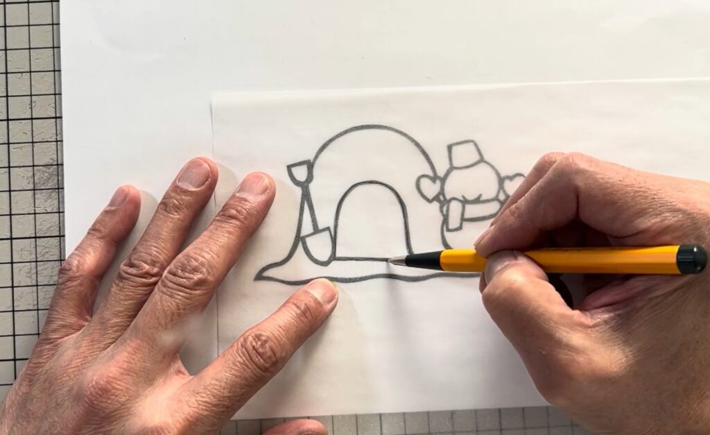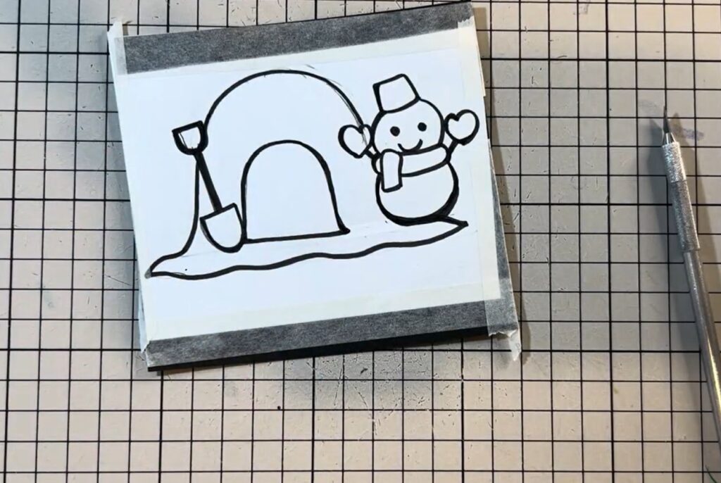 色を入れたい部分(かまくらの内側や明かりの部分)の上にトレーシングペーパーを重ね、鉛筆で輪郭をなぞります。