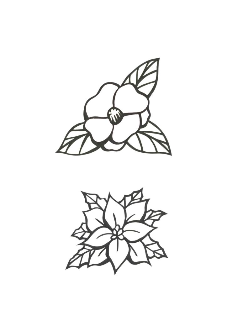 大きく開いた花びらと丸い葉の組み合わせが特徴で、切り絵にするとシンプルながら存在感のある作品に仕上がります。