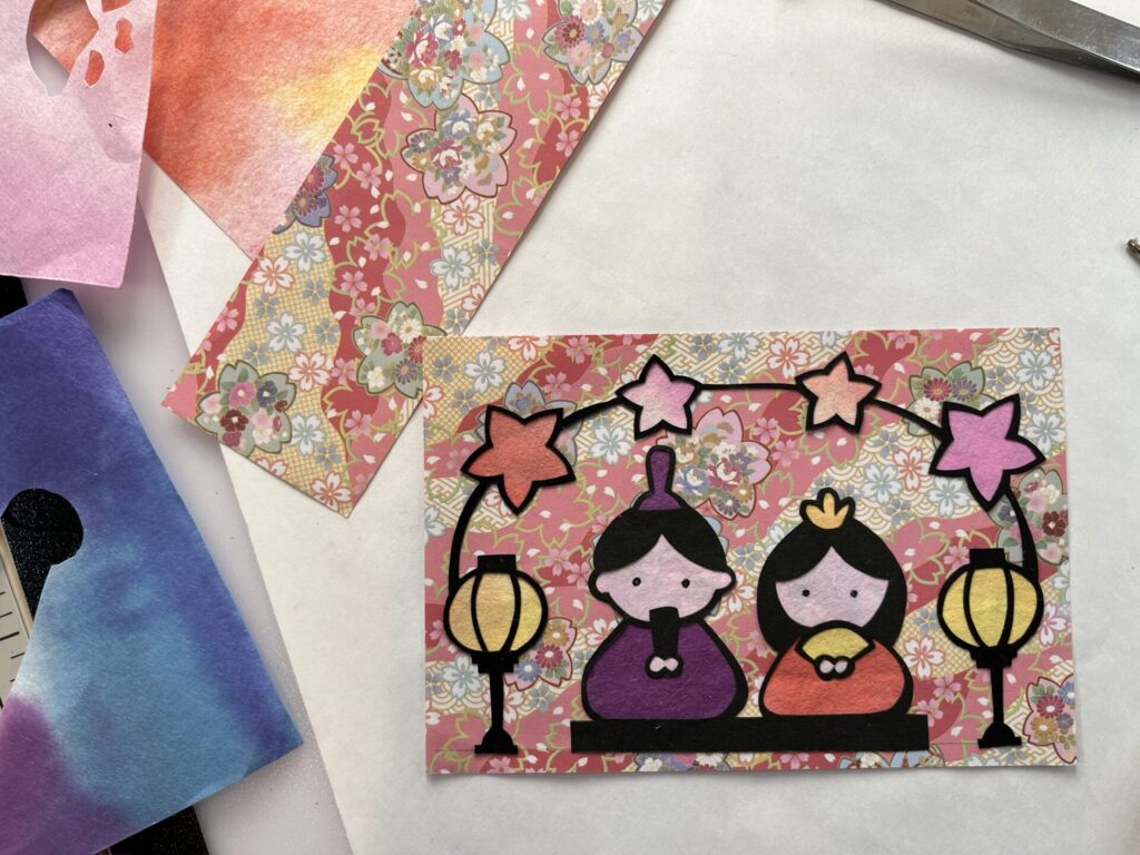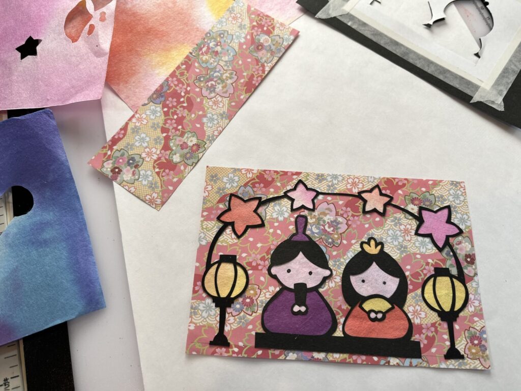 和紙や色画用紙を重ねてカラー切り絵にアレンジ