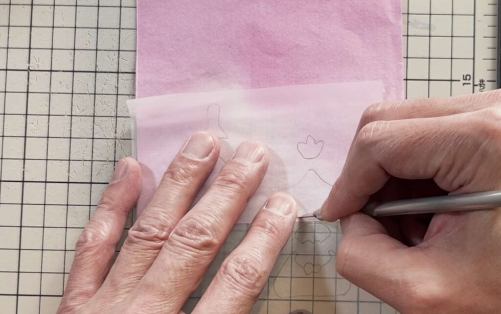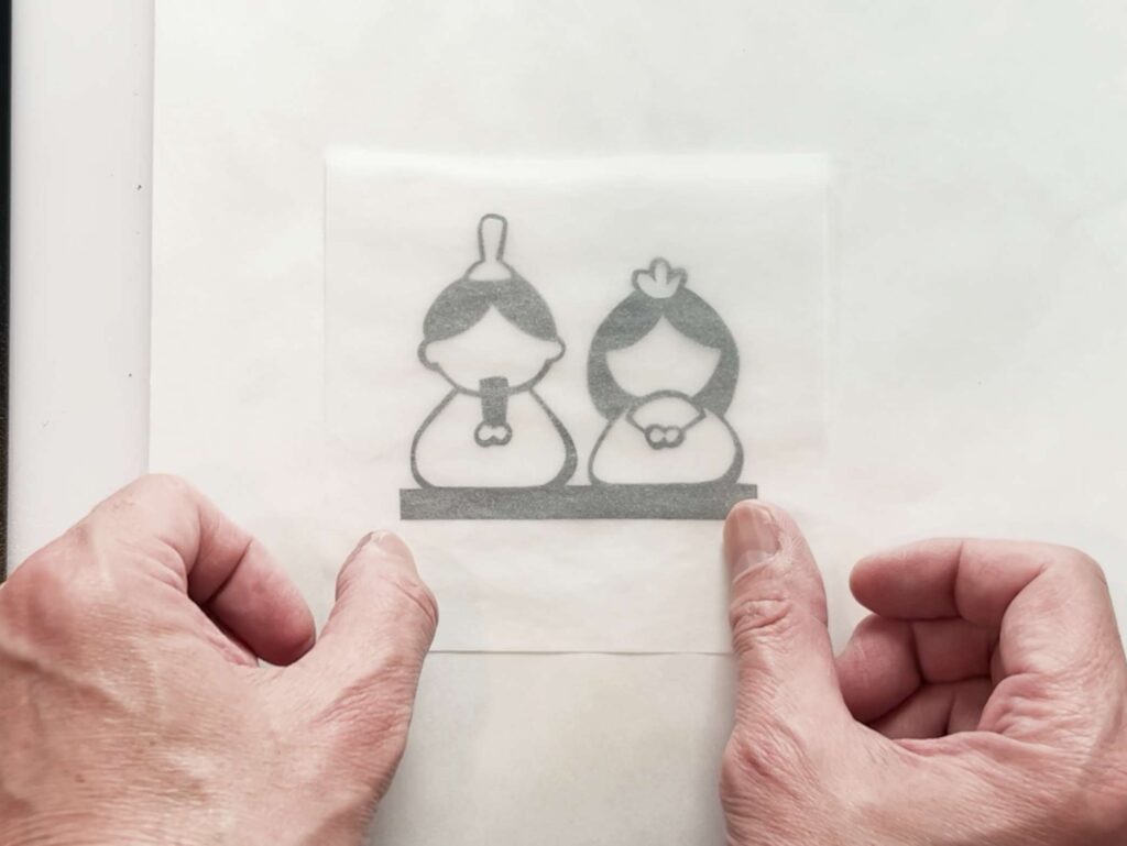 そのトレーシングペーパーを使いたい色紙(千代紙など)に重ねて、一緒にカットします。