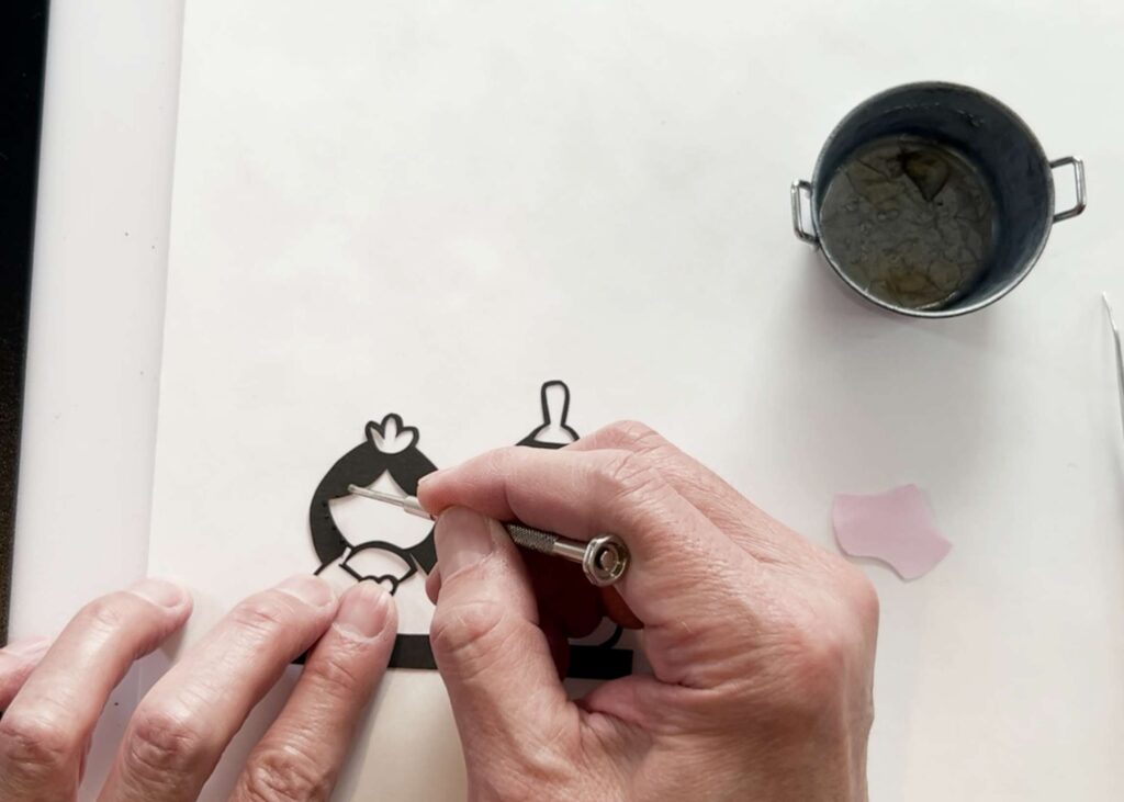 図案の上からデザインナイフで切っていきます。