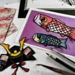 ベースの図案が切れたら、色紙(和紙など)を使った色付けにもぜひ挑戦してみてください。