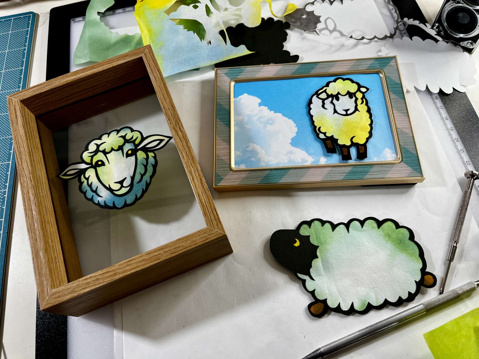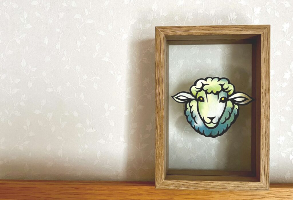 お好みの色の台紙を選ぶことで、羊のシルエットがくっきりと浮かび上がります。