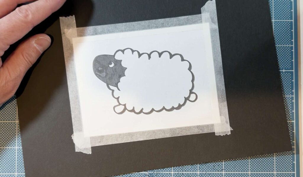 印刷した図案と黒い紙がズレないようにしっかりと固定します。