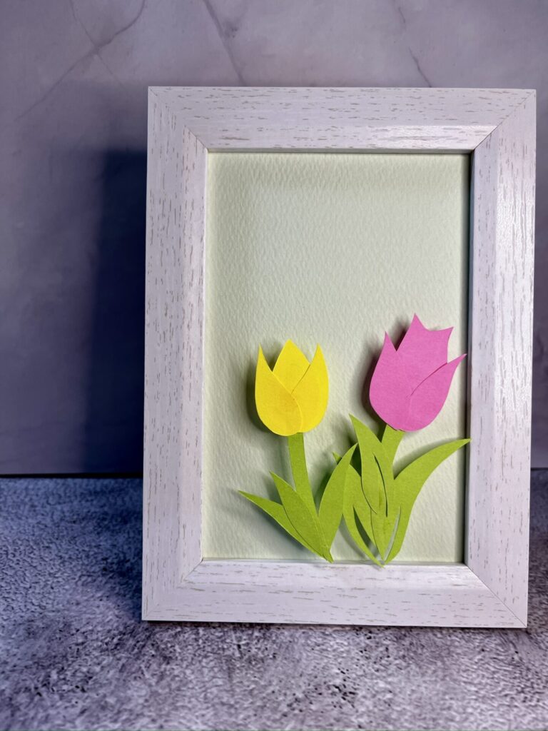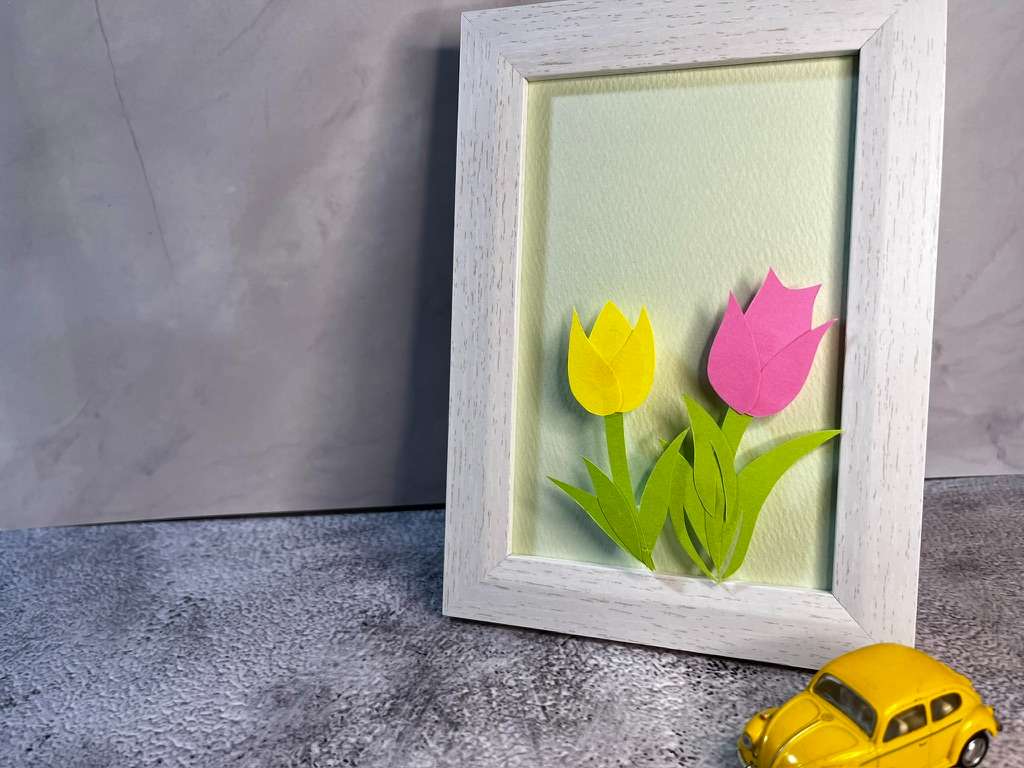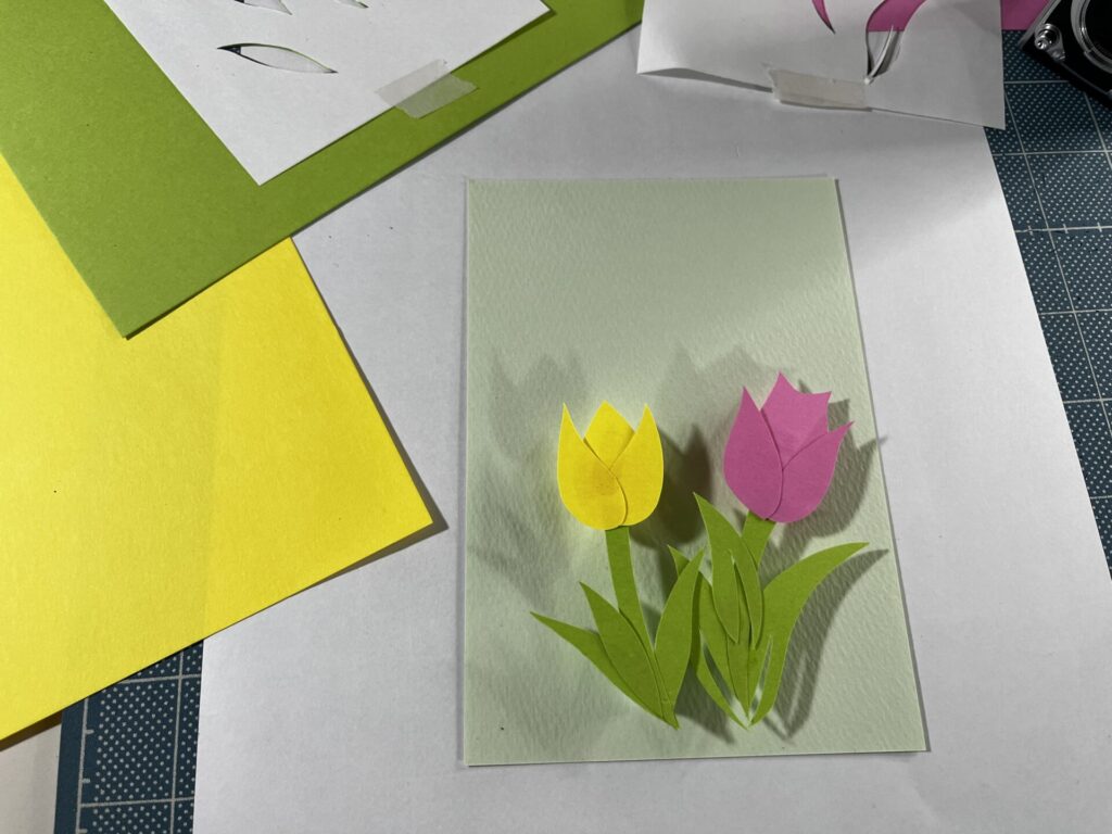 今回貼り合わせて出来たお花は、台紙に貼って飾っていくのがおすすめです。