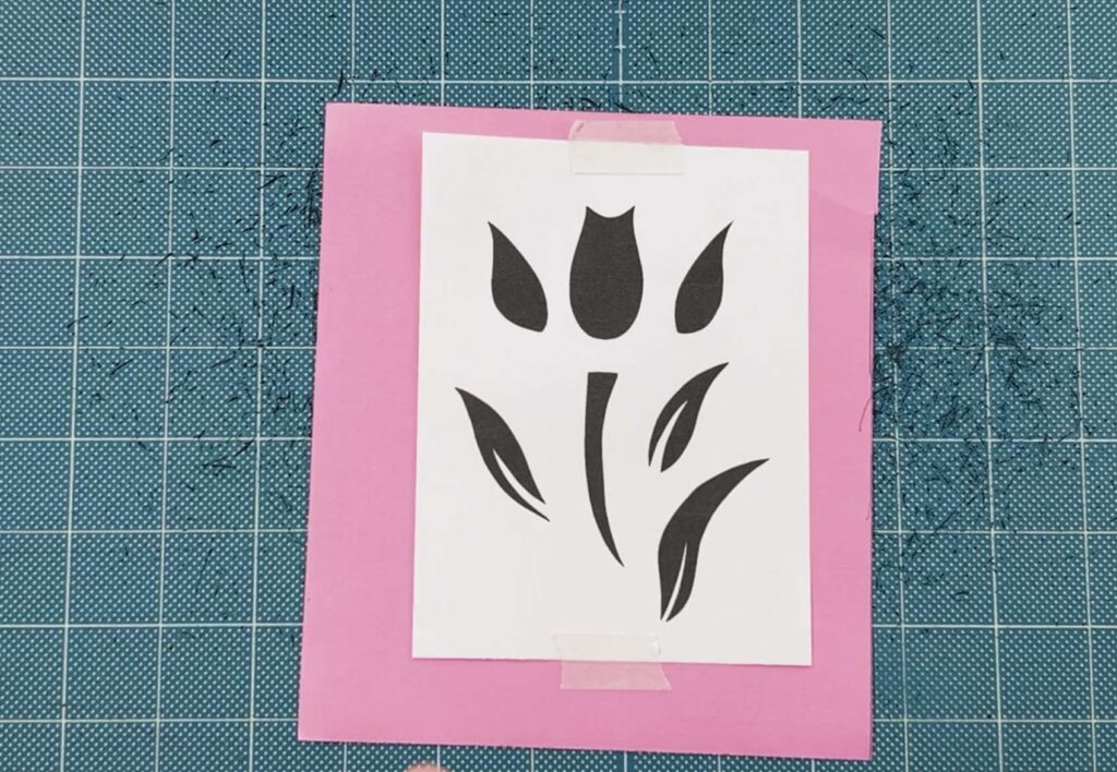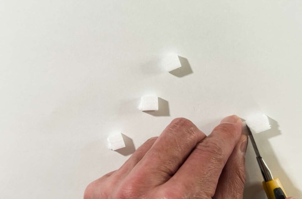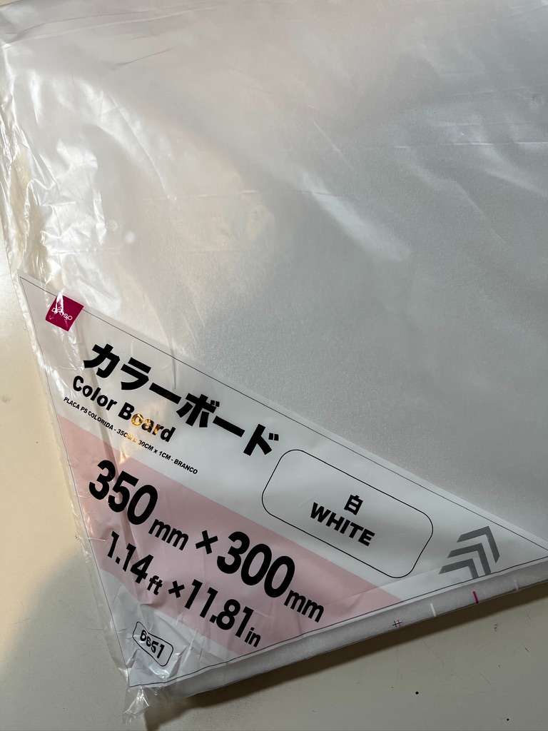 まず、100均などで買える「カラーボード」を小さく切り、台座として台紙に貼り付けます。