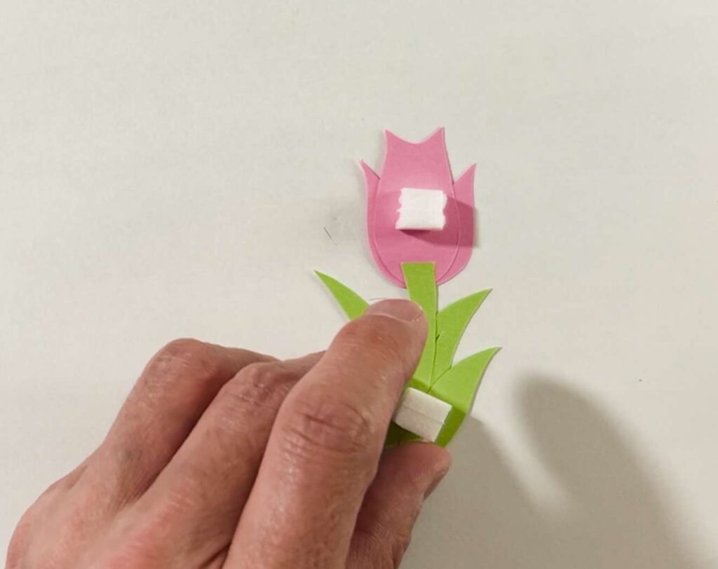 次に、もう一輪のお花を、最初に貼ったお花の上に重ねるように配置します。