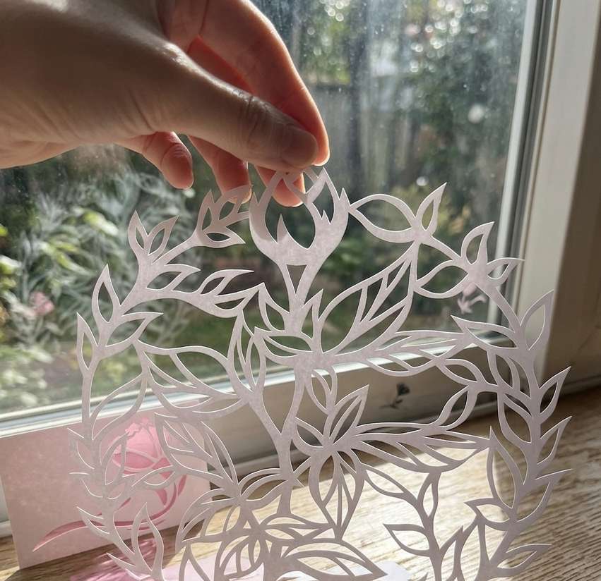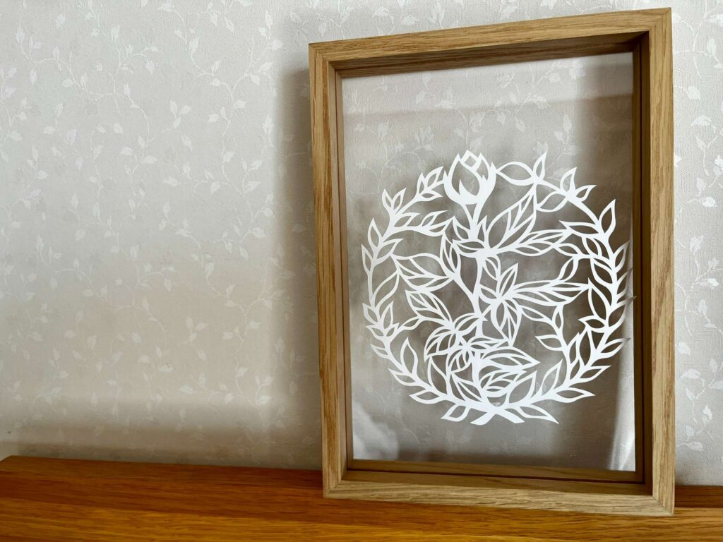 さらに複数の紙を重ねていけば、より立体的で奥深いレース切り絵になり、お部屋を彩る素敵なインテリアになります。