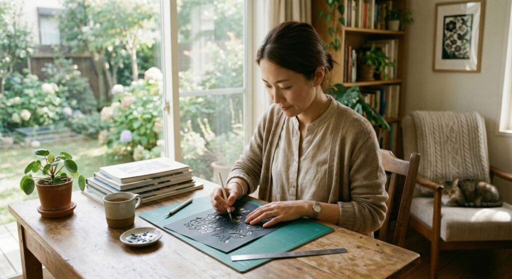 自分で作った切り絵は、まるで生きているように感じられ、日々の暮らしを優しく彩ってくれます。