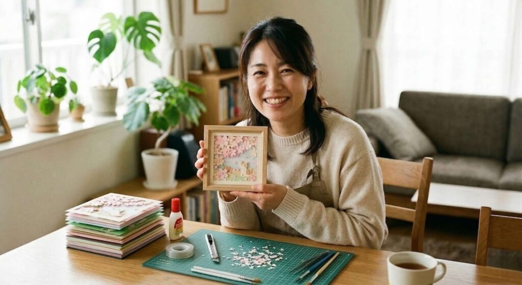 「カッターを使うなんて中学生の美術の授業以来…」と、最初は本当に私にできるか不安でいっぱいでした。でも、説明通りの手順でゆっくり進めてみたら、ちゃんと形になって感動!自分でも信じられないくらい可愛くできました(笑)。途中で少しつまづいた時も、チャットで質問したらすぐにアドバイスをもらえたので、一人で悩まずに最後まで完成させることができて助かりました。