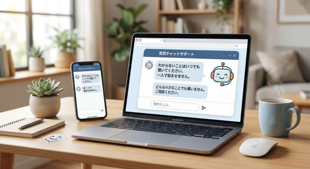 質問チャットサポート わからないことはいつでも聞いてください。一人で悩ませません。