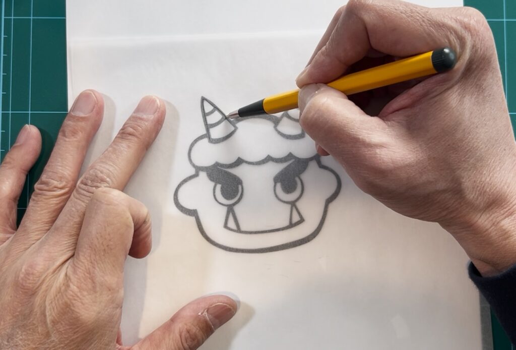 カットした図案(裏側)にトレーシングペーパーを重ねます。