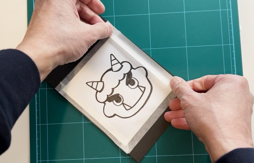 まず、図案用紙(コピー用紙)と切り絵用紙(黒画用紙)を重ねます。