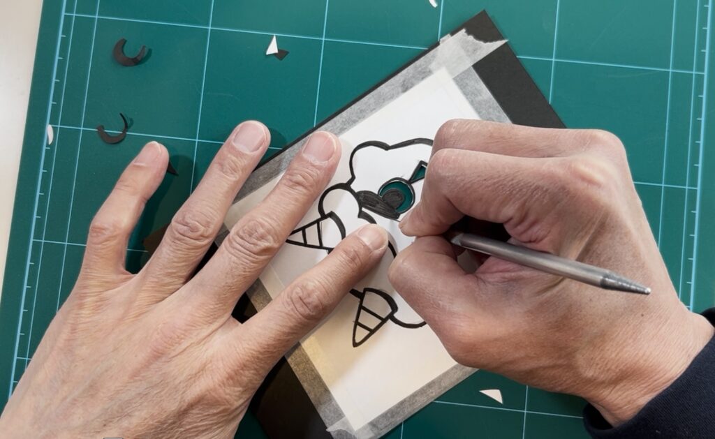 図案と道具を用意したら、実際に切っていきましょう。
