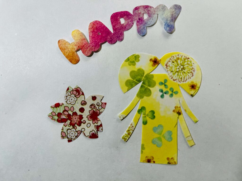 お祝い向け:ポップなモチーフや文字の切り抜きデザイン