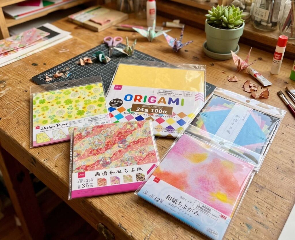 さらに、色紙(いろがみ)や千代紙、染め和紙なども100均で豊富に揃います。