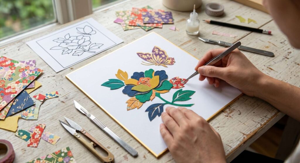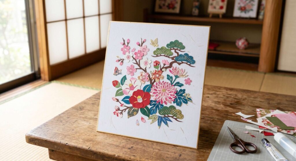 切り絵を色紙に貼る際、少しの工夫で仕上がりが格段に良くなります。