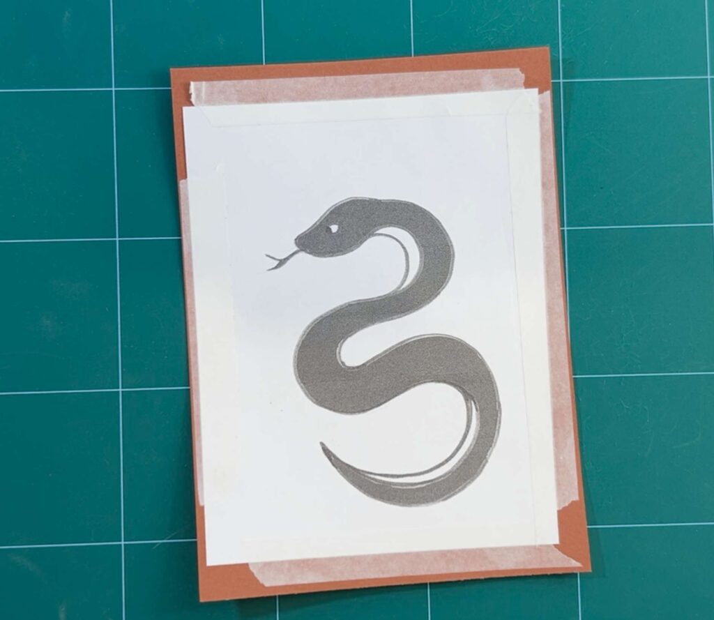準備が整ったら、いよいよ実際に蛇の切り絵を切っていく手順に入ります。