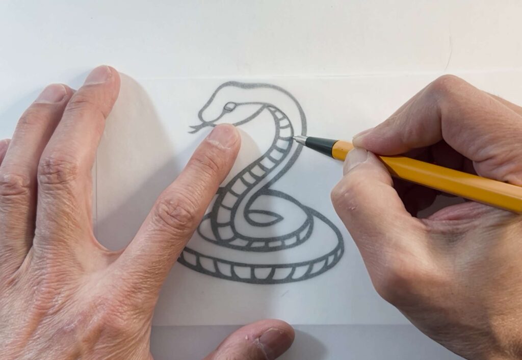まずは、シンプルなシルエットで構成された蛇の図案から始めることを強くおすすめします。