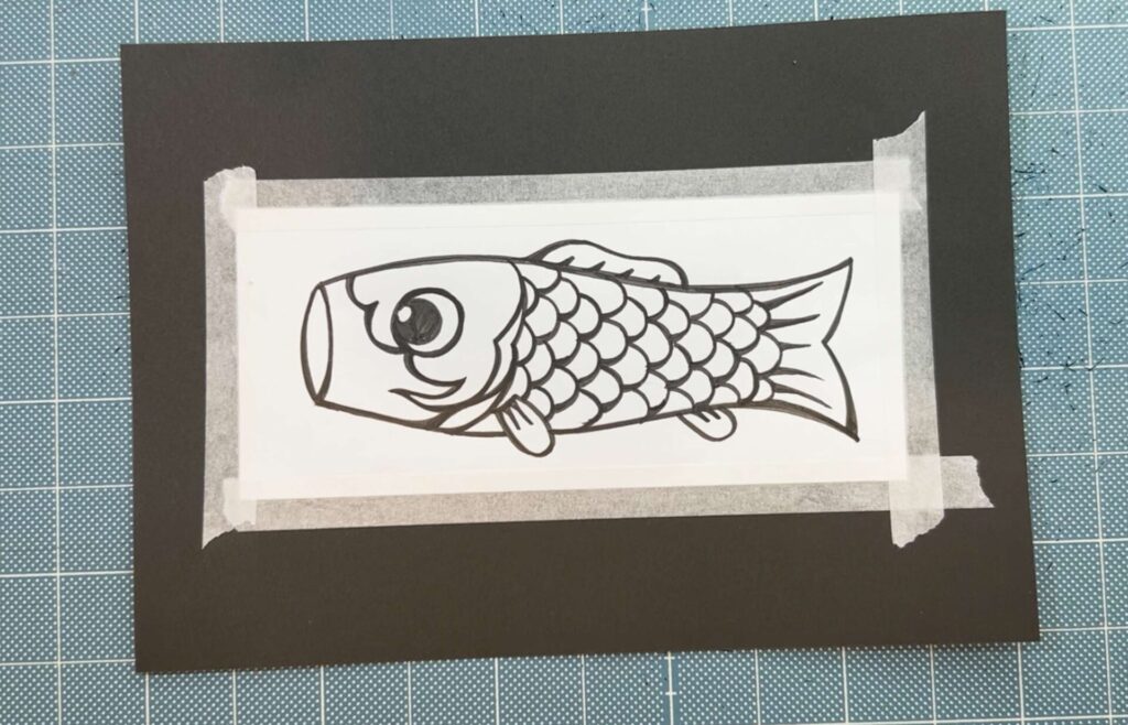 ステップ1:下準備|図案と画用紙をズレないようにテープ留めする