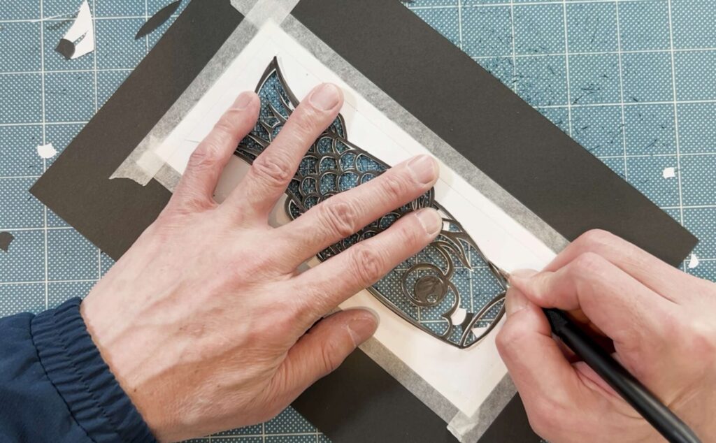 ポイント: マスキングテープは、図案の線(切る場所)に被らない位置に貼るのがコツです。