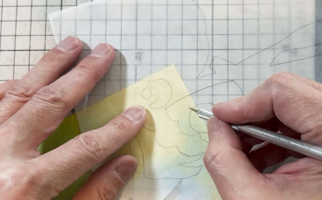 切り抜いた図案をなぞって、色パーツの型紙(アタリ)を作るのに使います。