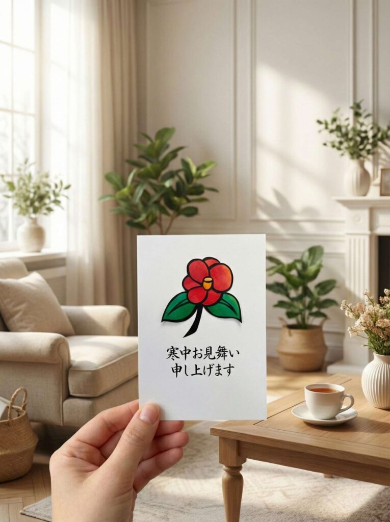 - 縁起が良い:常緑樹である椿は「生命力」の象徴とも言われ、寒中見舞いや冬のギフトカードとしても最適です。