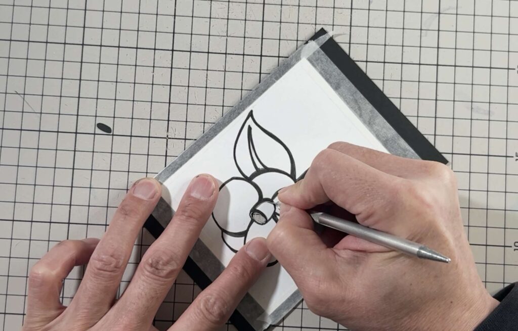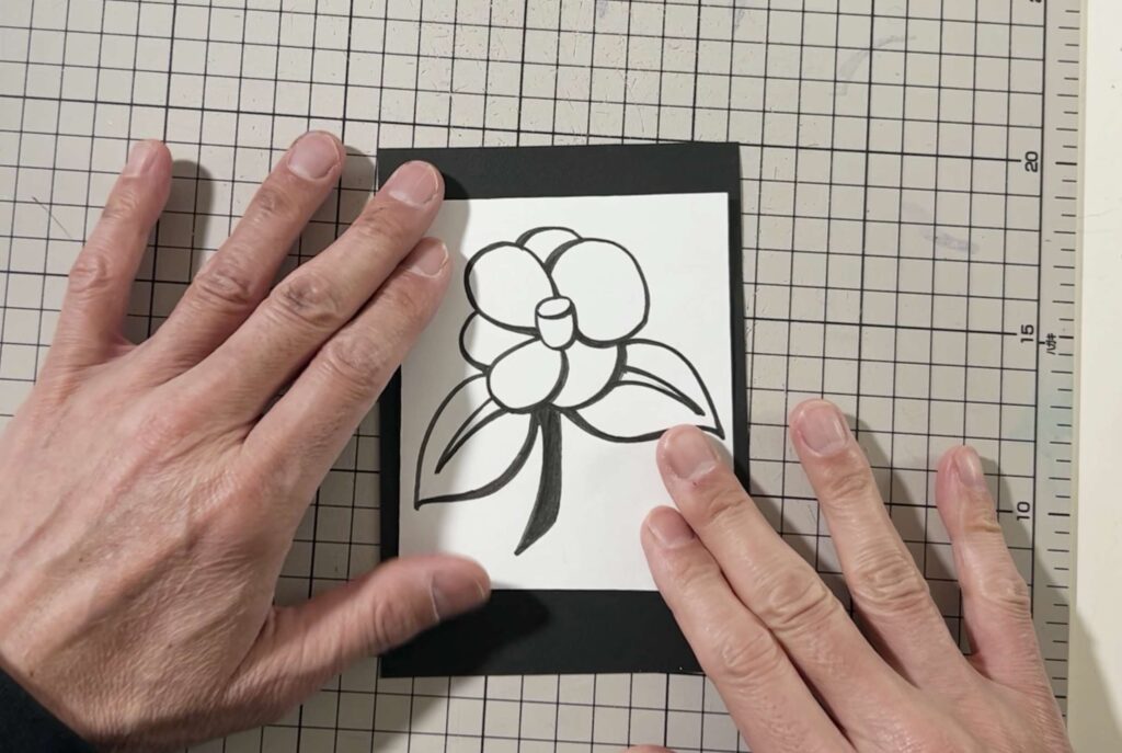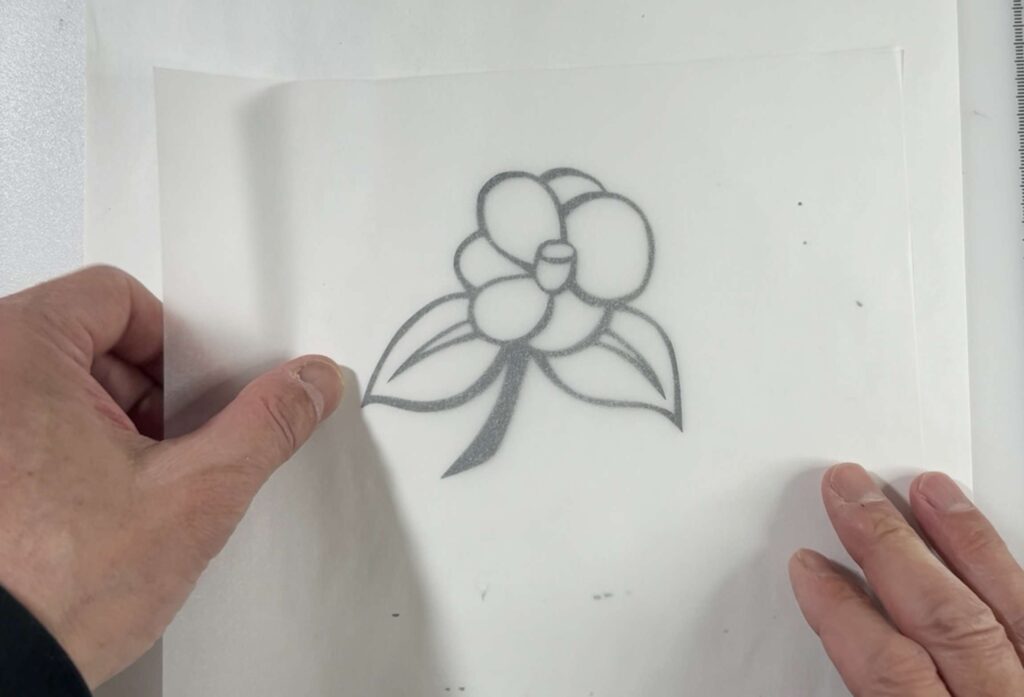 切り抜いた図案(黒い枠)の上に、トレーシングペーパーを重ねます。
