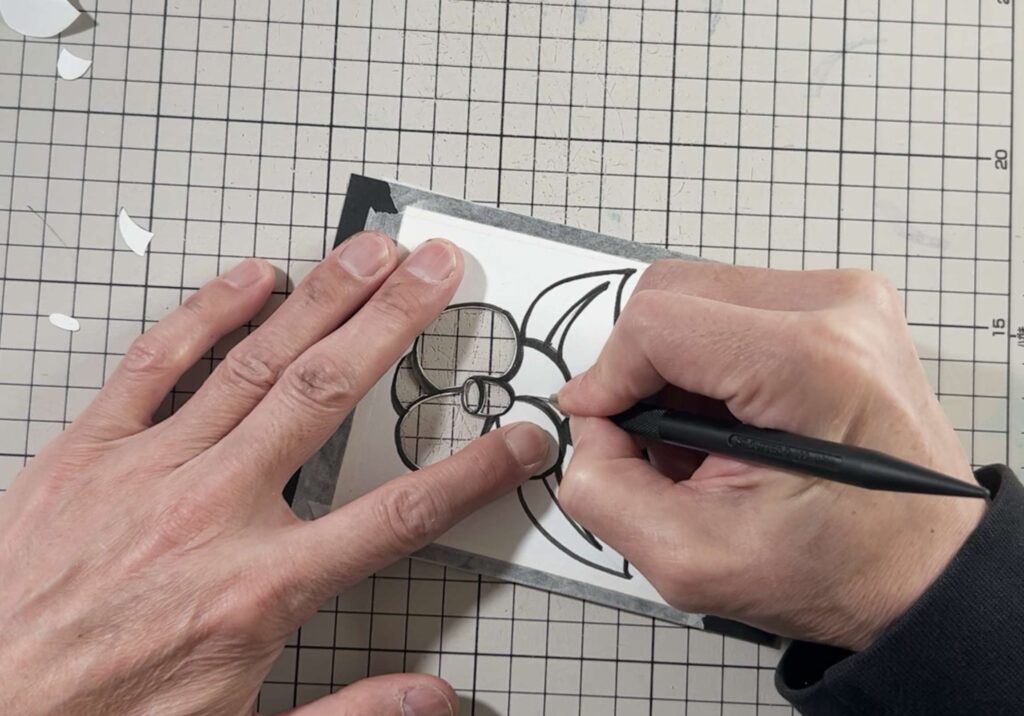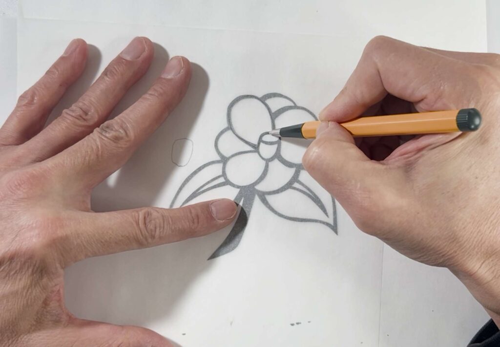 鉛筆で黒い線の上をなぞって型取り(トレース)をします。